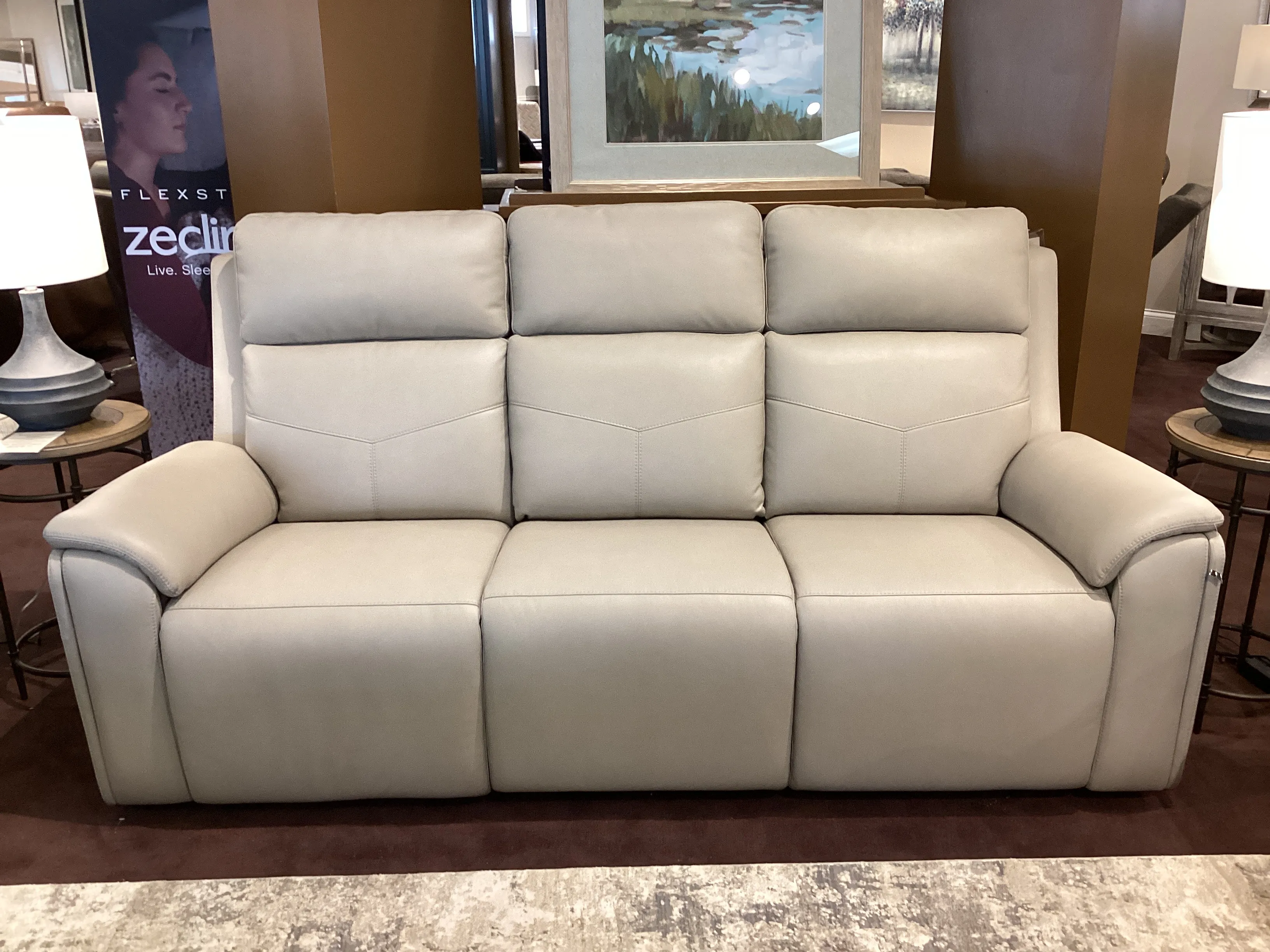A versatile showstopper, the Vernon power reclining sofa has everything you need for ultimate comfort. Its sleek, modernized silhouette is upholstered in a family-friendly, leather-like fabric with CloudLux™ down alternative seat toppers and headrests that will put you on cloud nine. Customizable Zero Gravity recline, and adjustable heat and massage bring the best in relaxation, while the drop-down back cushion contains storage, cupholders, and a charging tray to keep everything you need within reach. Kick back and stand out, all with Vernon.