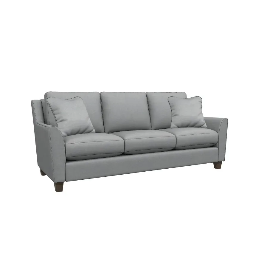 - Decorative wood legs and sleek topstitching accents