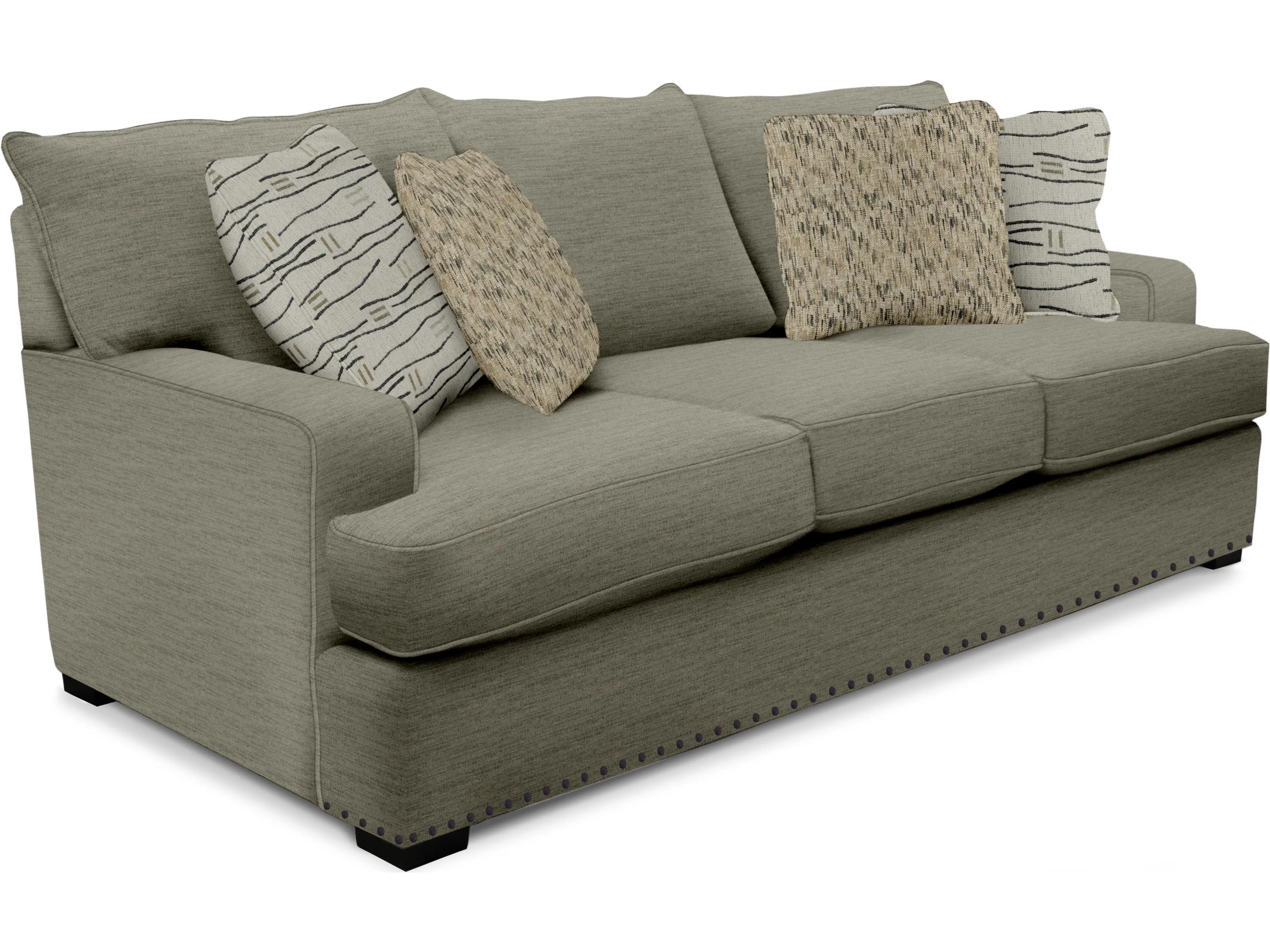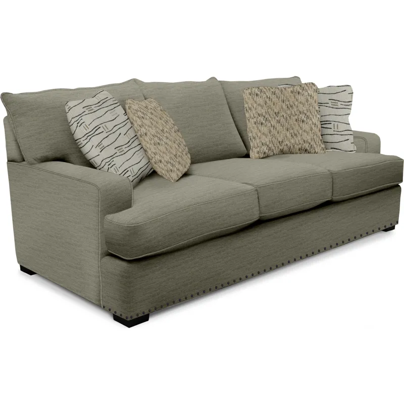 Construction Back: Webbing, loose, poly fiber fill in a channel bag, zipper access. Seat: Sinuous wire, block foam with poly fiber wrap, ventilated, reversible. Legs: 4.5''x1.5'' wood, screw-in. Pillows: 2 x 22'' & 2 x 20'' fiber fill. Trim: Brass nails. Optional Upgrades: Coil Cushion, Frame Coil, feather blend pillows.