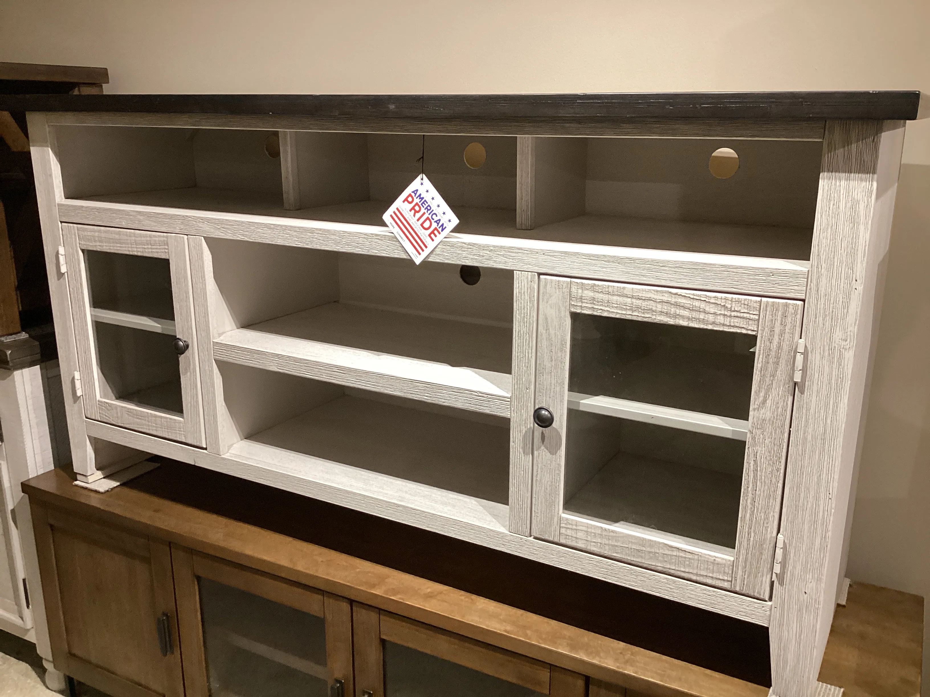 Sound Bar Opening: Recessed center divider allows a larger space for a sound bar.