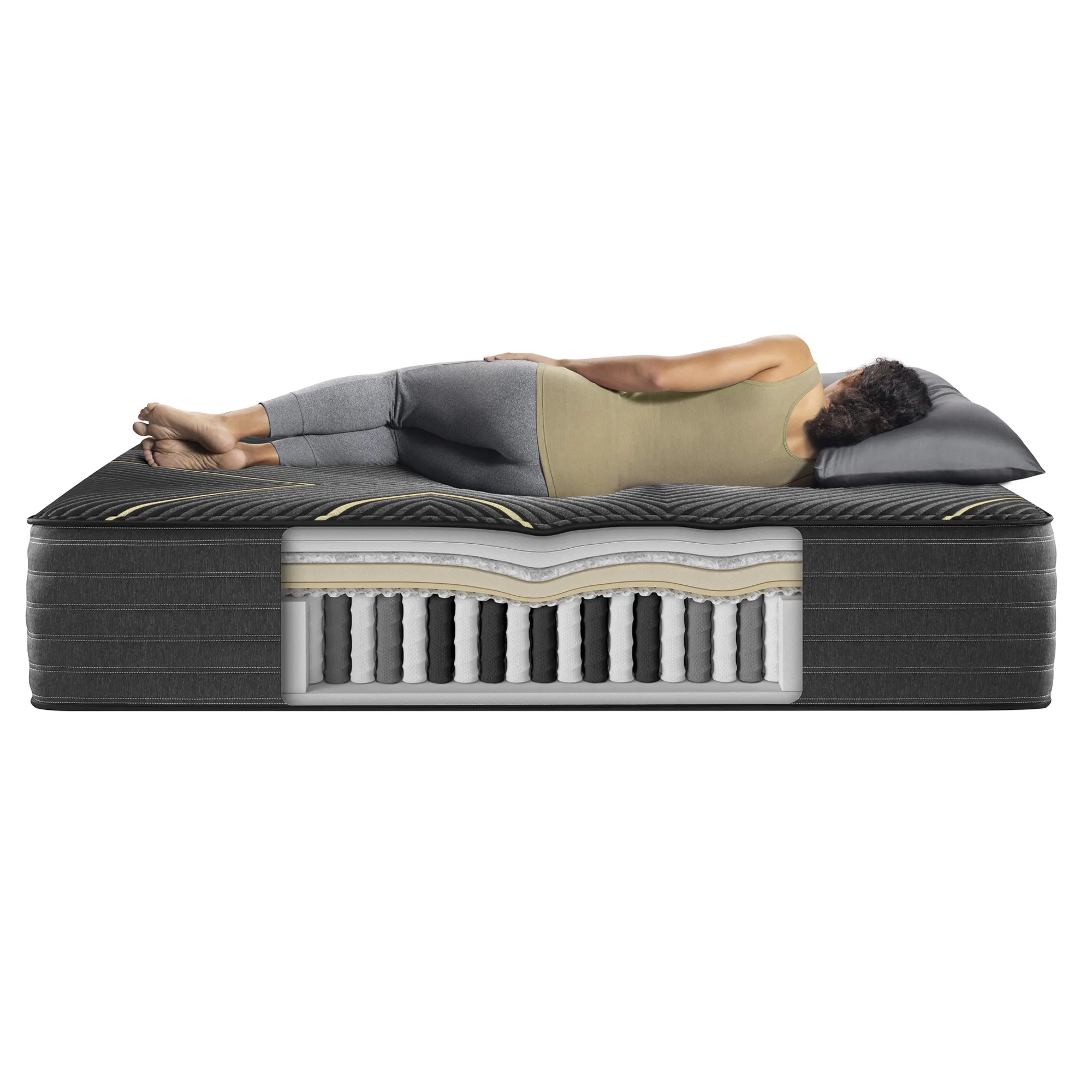 Beautyrest Black® LX-Class features our premier support system, designed with zoned T3 Pocketed Coil® Technology for up to 21% more support where your body needs it the most.** Our new plant-based cooling technology helps provide up to 18% more cooling power to keep you comfortable as you fall asleep and throughout the night***. For even more support, AirCool® Memory Foam provides pressure point relief and freedom of movement for both you and your partner.