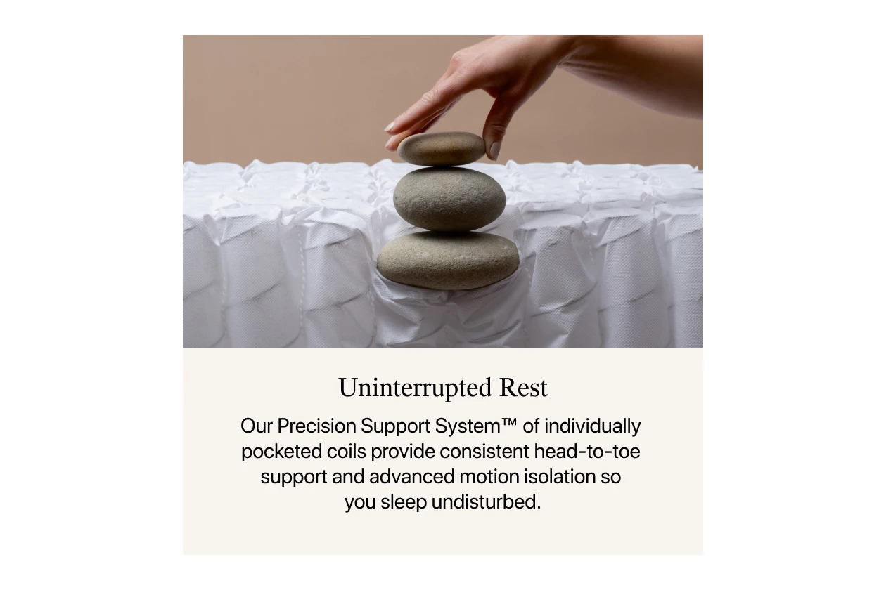 Experience support for more than just your body with the Harmony Hybrid Collection. Innovative materials work harmoniously to bring you restorative sleep with improved support, advanced motion isolation and a lush cover made with plastic bottles diverted from the ocean. The Precision Support System™ offers consistent support across the entire mattress, from head to toe, so you and your partner sleep undisturbed. Up to 50 plastic bottles collected by hand from coastlines and ocean-bound waterways* have been transformed into premium fabric to create a lush, durable sleep surface that helps contribute to cleaner water. Infinicool® helps you stay comfortably cool all night with its breathable, moisture-wicking fabric infused with cooling fibers. Pressure-relieving foams help ease aches and pains while also creating airflow throughout the mattress. All models are crafted with a smooth, body-contouring memory foam top perfect for anyone who loves the feeling of being cradled by their mattress and want rejuvenating sleep each and every night. *Collected from areas within 50km of coastlines.