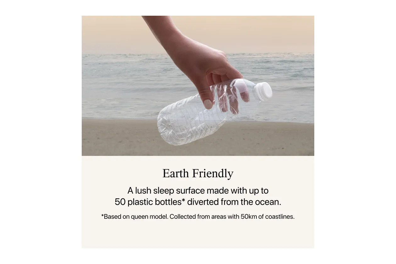 Lush sleep surface made with plastic bottles diverted from the ocean