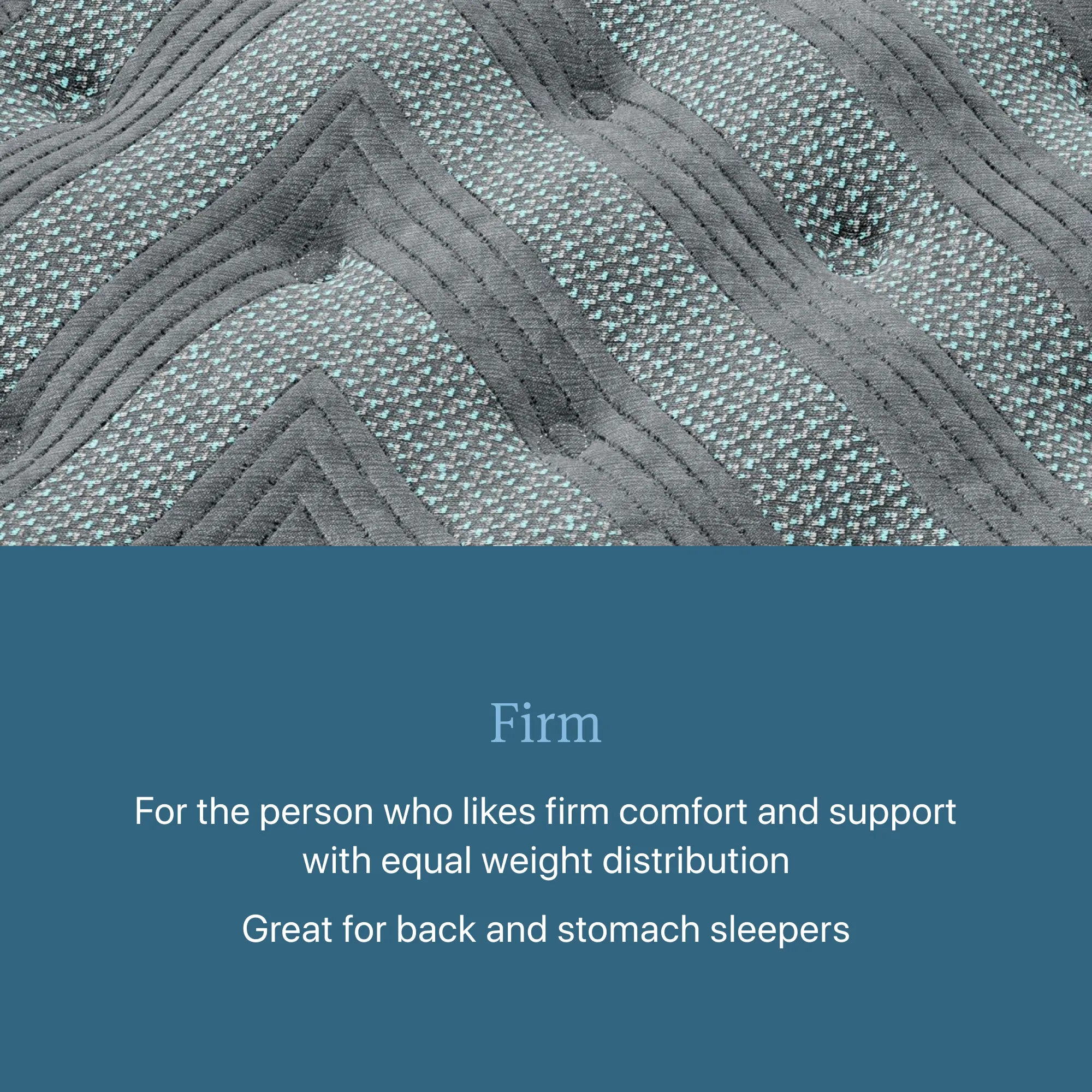 • For the person who likes firm comfort and support with equal weight distribution. Great for back and stomach sleepers