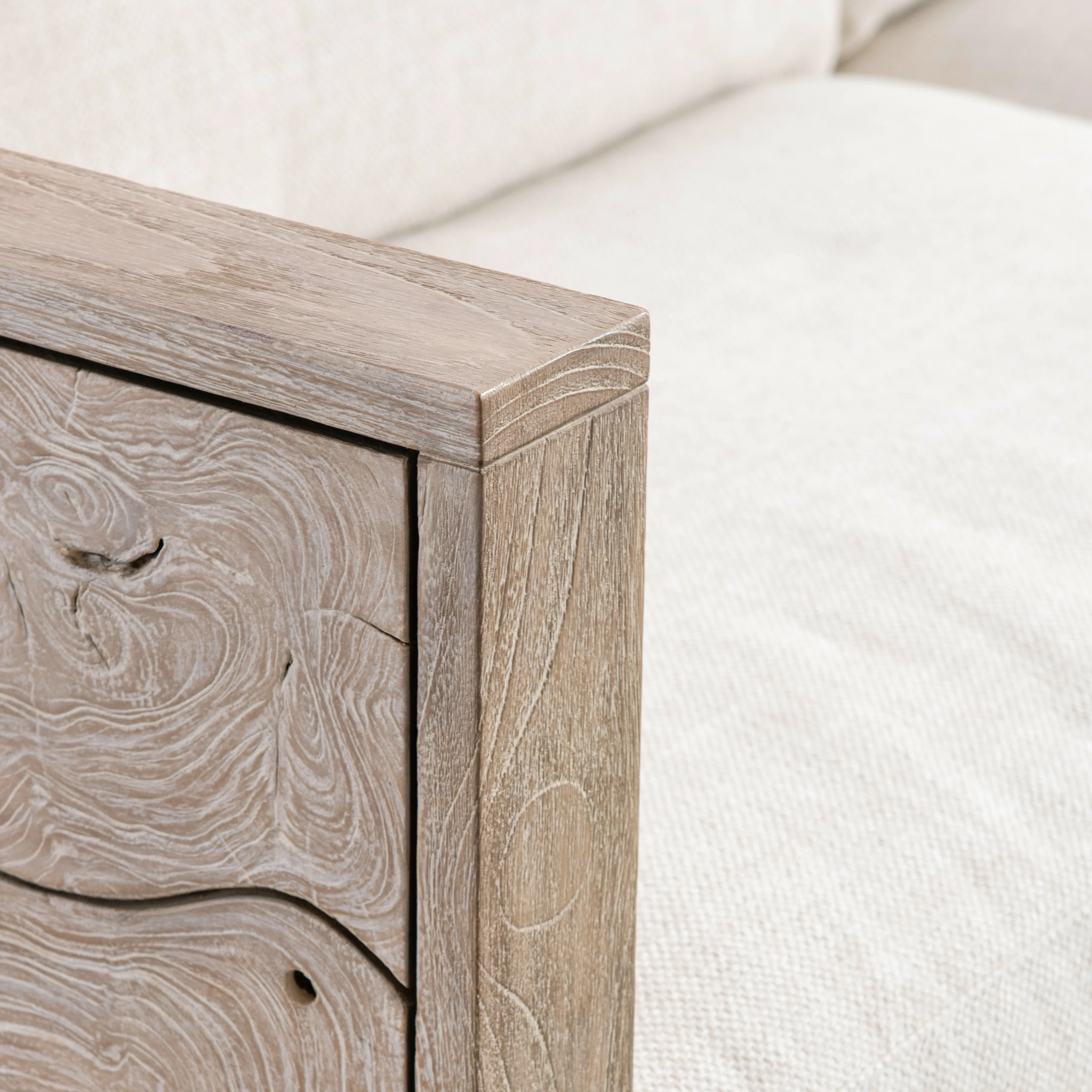 The Madura sofa in solid teak will lend a natural presence to any outdoor setting. Designed with exterior wood-grade materials, this gorgeous sofa has plush cushions for entertaining and relaxing.